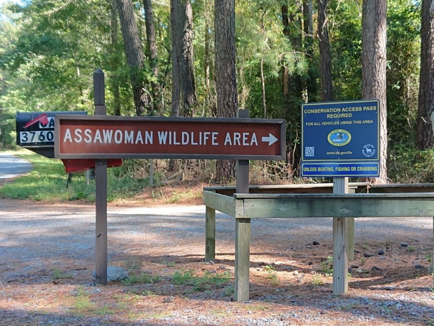 One of the best kept secrets along the Delaware-Maryland Coast. The preserve was created from nine farms, ranging in size from 30 to 325 acres. All were lost during the Great Depression and purchased by the U.S. Forest Service. Assawoman has been managed as a wildlife area since 1943. Most recently purchased was the Hickman Tract in 1989. This tract contains a rare plant site and is home to the protected Delmarva fox squirrel. The area contains 3 parts: Miller Neck (1,335 acres), Muddy Neck (284 acres) and The Beach (76 acres). The Assawoman Wildlife Area is managed for migrating and wintering waterfowl, white-tailed deer and bobwhite quail. Also protected are the Canada Goose, black and mallard ducks, amphibians and reptiles.