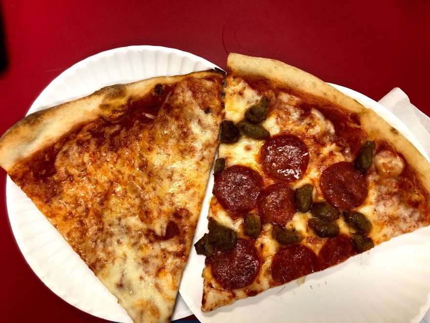 Pizza was delicious. We tried the cheese, white, buffalo, and pepperoni slices. They were all good. I want more...