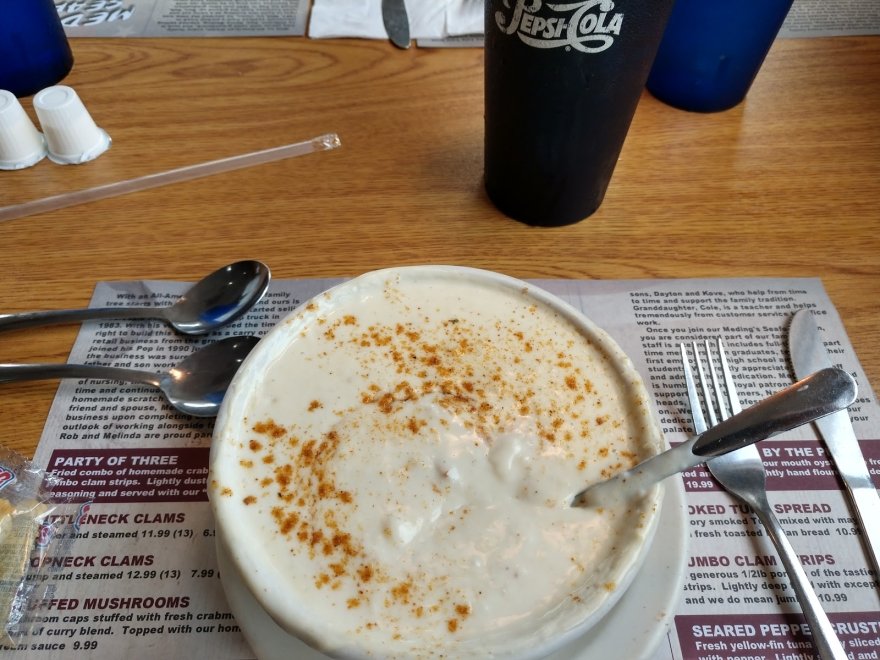 We went here on a recommendation from family on the soup. My boyfriend had the cream chowder soup. It was way salty. I had the Maryland chowder. Lacked flavor and the cup was about 4 oz for $6.99. Ridiculous but ok. Then he had the Seafood club which was actually tasty. The fries were good also (hence the 2 star rating). But the waitresses forgot the Cole slaw…repeatedly. It finally came at the end of our meal but only bc he reminded her. I had the tuna tacos that were underwhelming and flavorless. The tortillas were large flour, which I prefer over corn but there was too much tortilla and not enough seasoning. And then there were the flies. The flies surrounded our table and were everywhere. It was gross and menacing. If not for the cordial and friendly staff or sandwich and fries, we would have given it 1 star.
