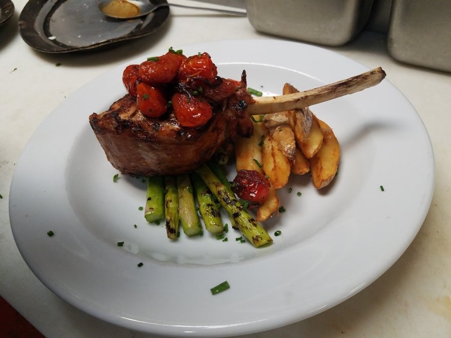 The food is outstanding, prime rib, lamb, pork chop and don’t forget to ask about the Caprese salad with whipped goat cheese, even if we go for dinner somewhere else we always come for that salad for dessert.