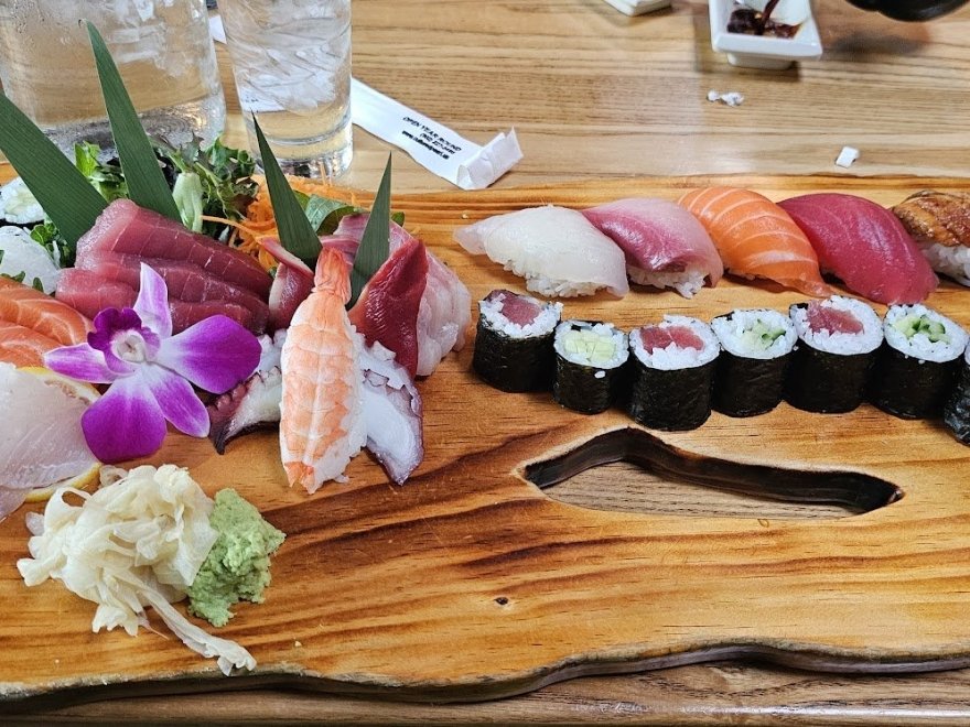 Love the vibe!! The decor is eclectic and brings a fun flair to the dining experience. Always greeted kindly by the staff and we got a seat with no wait (midweek & offseason). The menu was robust and sushi was solid. Cuts of fish on the tuna & salmon sashimi were thick. Rolls were a good portion for cost. We enjoyed the flavors. Our server was friendly but a bit aloof. Nice surprise to have a slice of cake to celebrate a birthday in our party.